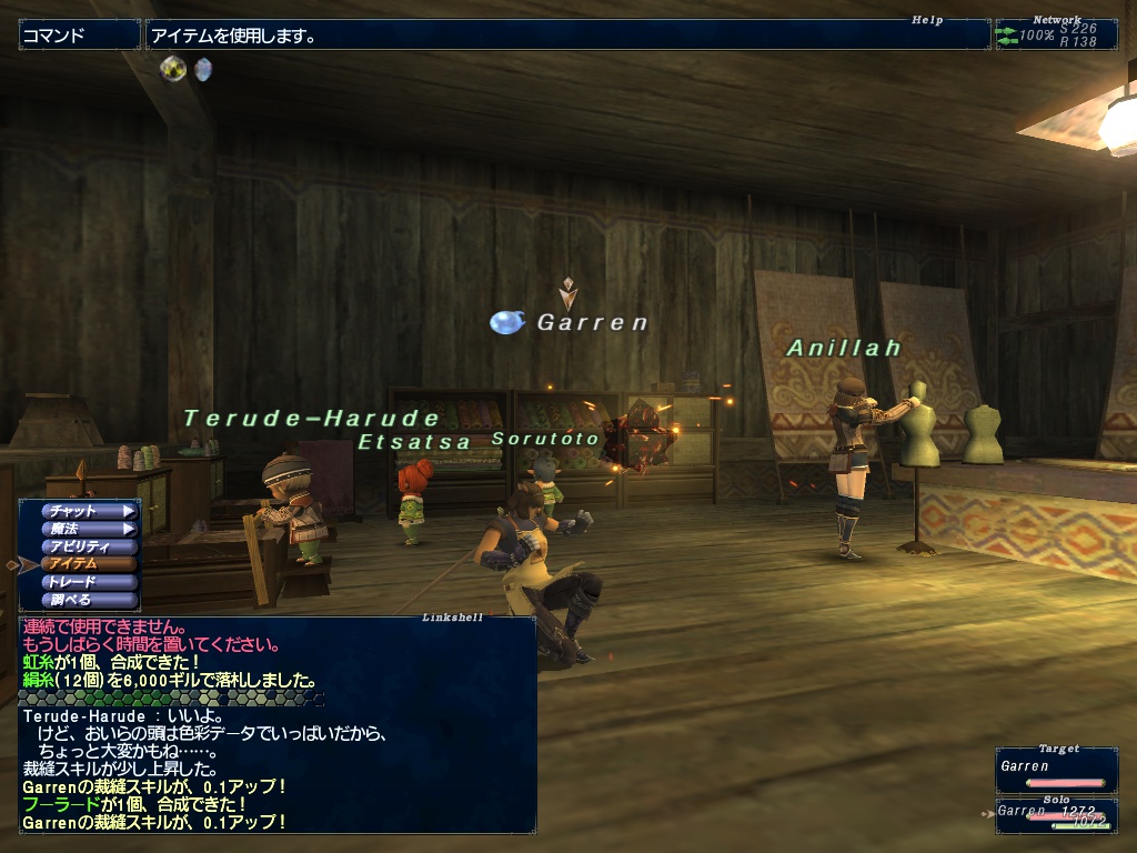 フーラードのスキル上限は、後で調べたら98だった。私の現在の裁縫スキルは92.2。職人装備2つに上級サポつけてやっと97。きつい。そりゃサポ無し職人装備未装着では割れるなー。