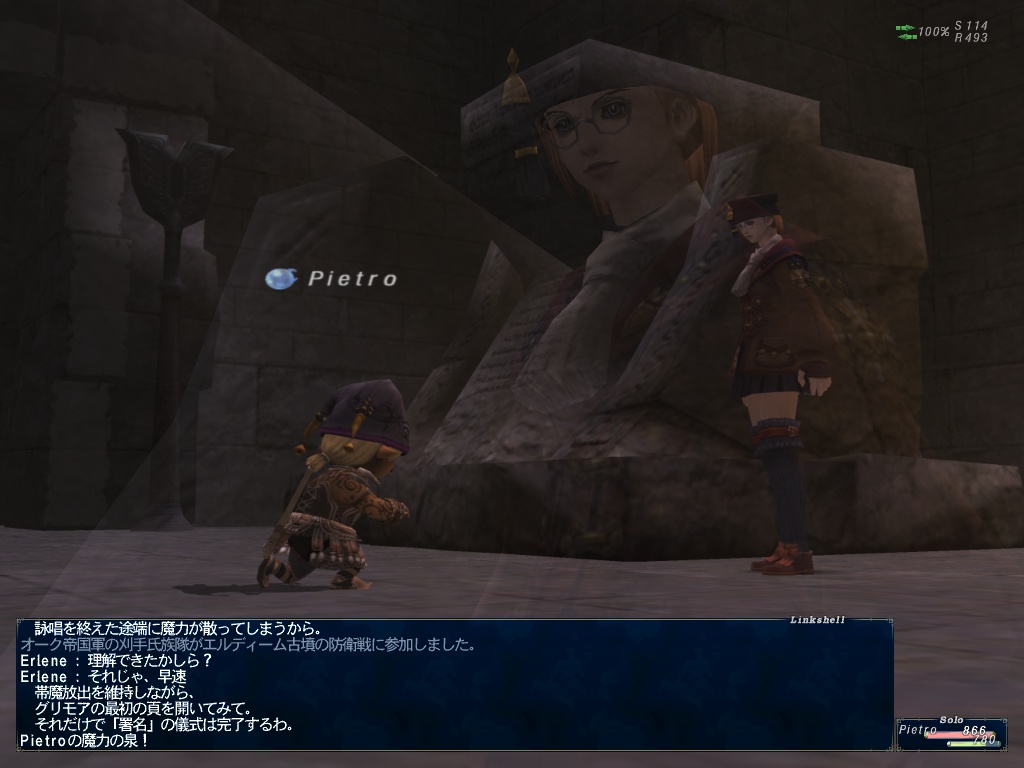 そろそろぴえとろのサポに学者が欲しくなってきたので取得しに行く。ロランベリー12D持ってクロウラーの巣〔S〕に行ってベラム12枚に変換。それをトレードした後、エルディーム古墳〔S〕で2時間アビの連続魔か魔力の泉使用中に依頼者に話しかけるとグリモアの署名が完了して学者取得。