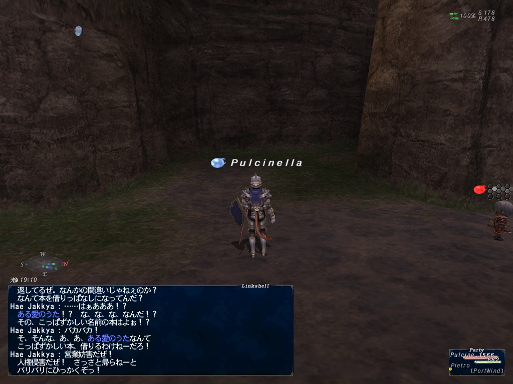 翌日、せいたんが学者Lv12でタロンギソロしてたので、ぷるちねっらさん戦士Lv35で寄生に行く。モリモリ狩ってシャクラミにも移動してLv37くらいまで上がった。