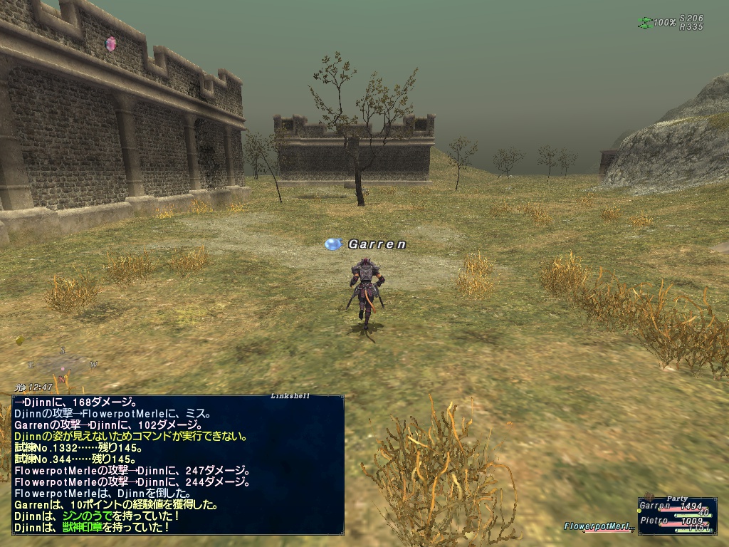 その他、しりさんの水シャムシールをオッスオッスして、水クァールを水曜日にアビセア-タロンギで2回やって、残り10。テレポヨトしたら丁度雨が来そうだったのでLv49の白魔導士ぷるちねっらさんをシンク対象にして、クァールを2匹狩った。