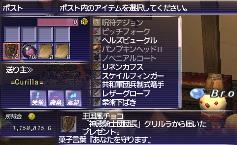サンド所属の倉庫キャラにクリルラさんからチョコが届いてた。