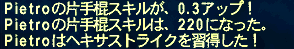 片手武器なので命中が足りなくてなかなか当たらなかったけど、何とかスキル220に到達。つけてたアートマは終焉、邪鬼、隠密だったかな。