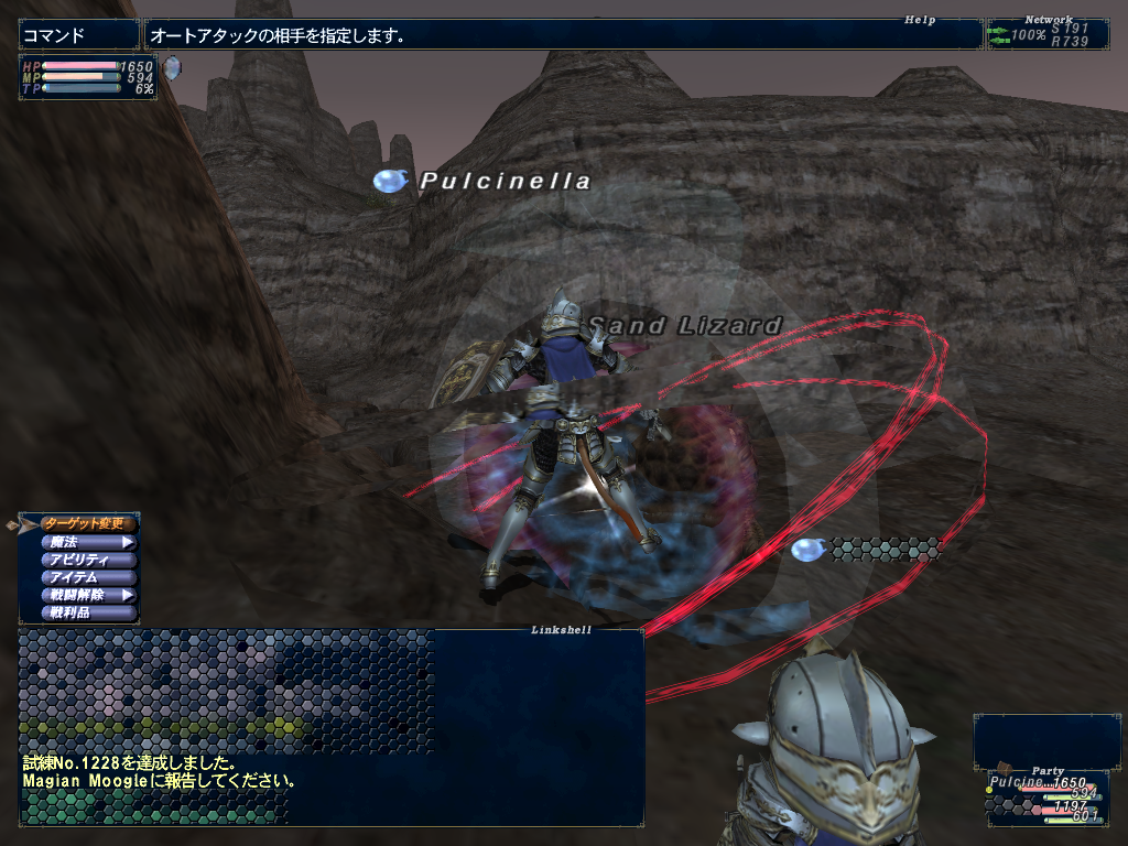 それの合間にぷるちねっらさんはしりさんと土シャムシールを作るべく、土天候/土曜日リザード討伐200だか250だかをやるためアットワ地溝に潜んでいた。なかなか天候が変わらなかったけどまあ地道にポイント稼いで完了。ほとんどしりさんに寄生する形だったけど!