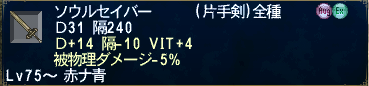 で、ソウルセイバーの物理カットが-5%になった。最終的には-10%になるんだっけ?
