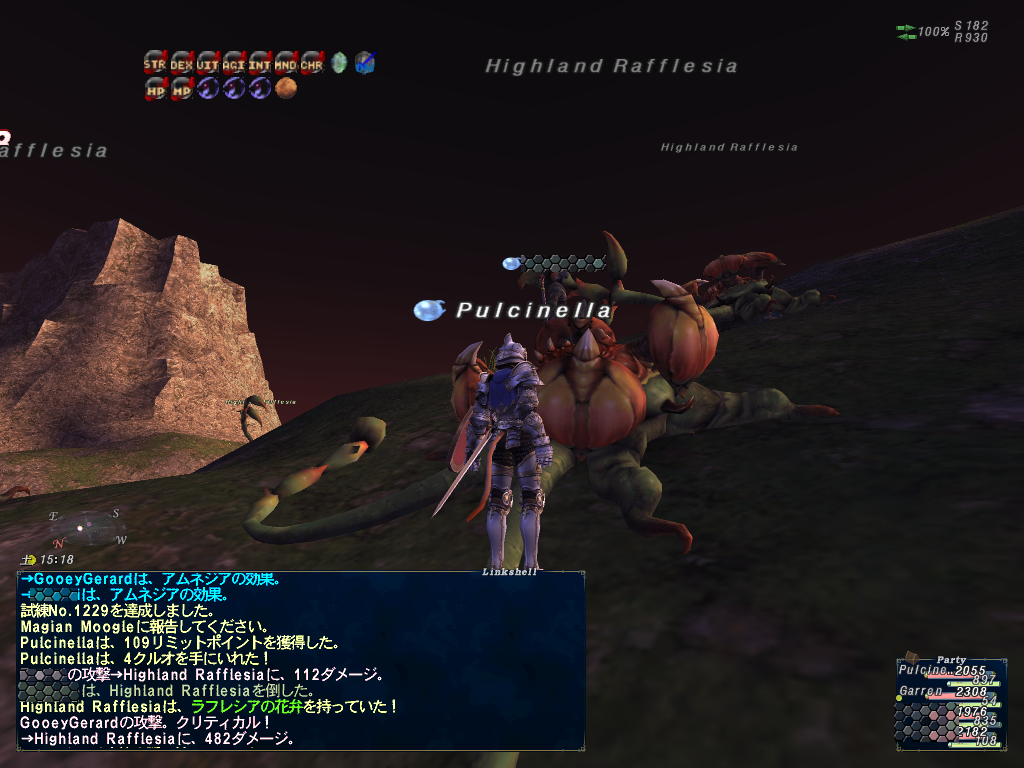 片手剣:土ソウルセイバーの試練は土天候/土曜日ラフレシア250かな?カルゴナルゴ城砦〔S〕で天候時にラフレシアを狩る。翌日、メリファト山地〔S〕で強いラフレシアを狩る。その翌日、土曜日なのでアビセア-コンシュタットに行ってラフレシアを乱獲する。せいたんが手伝ってくれたけど、ジシュヌの光輝で敵が蒸発してた。帰り際黄色ネームでHP減ってたラスコヴニクに突っ込んで絡まれた。近くにマスターの見えないユリィが居たので、弱点リセットのために獣使いの人がタゲを切ったらしい?