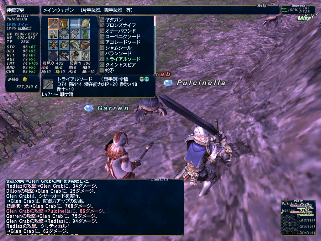 まあ…なんというか…@125の残り1回で気づいてしまったんです。Pulcinellaさんが…トライアルソードでは無く別の両手剣を装備していることに…。再び@125ポイント分ノック再開!うおおおおお!30分程度で終わって納品。
