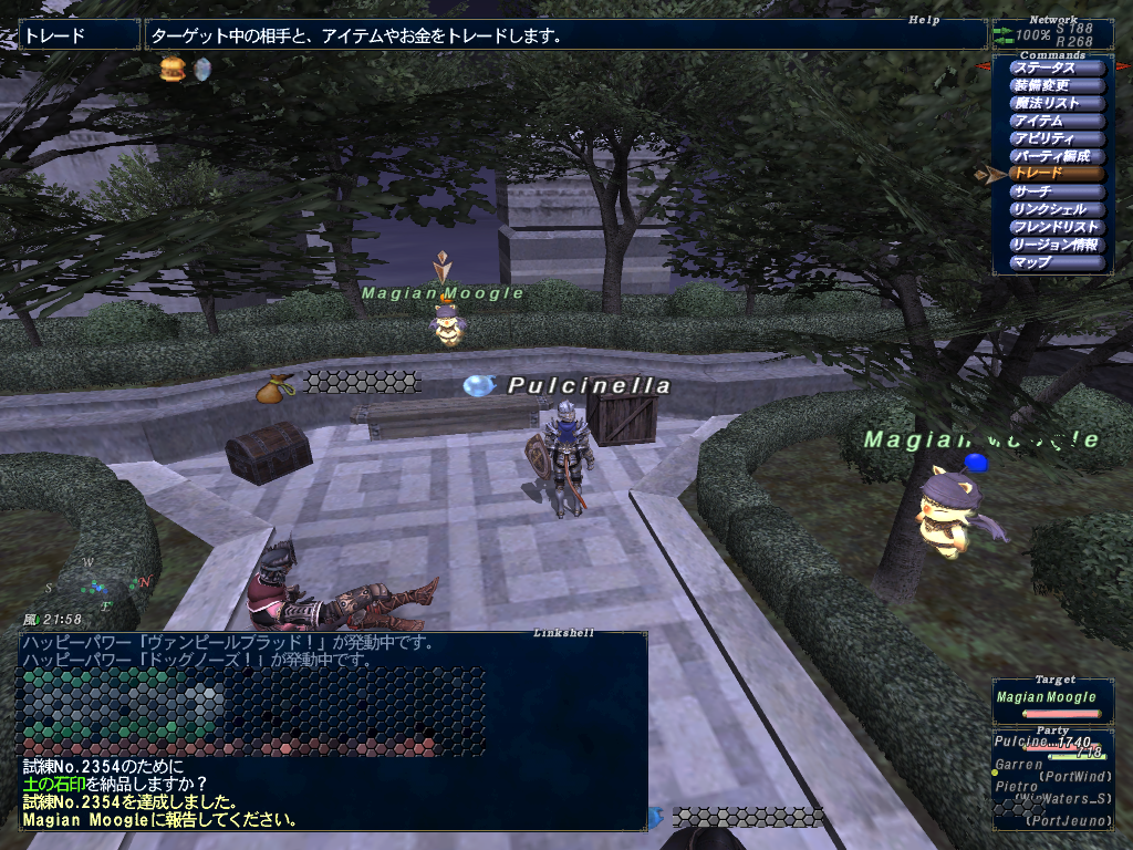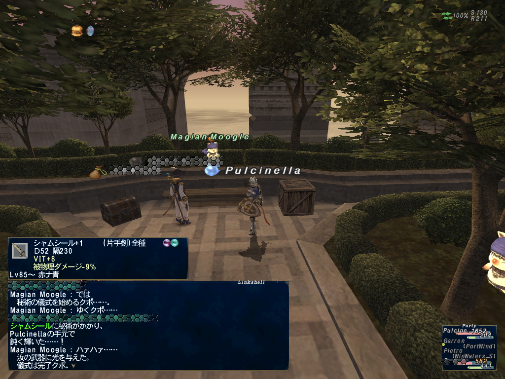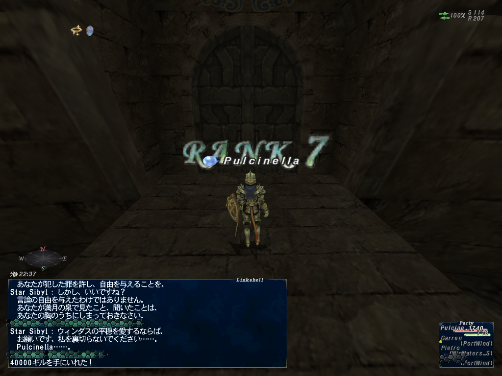 その後、しりさんに手伝ってもらってウィンダスミッションを進める。満月の泉>聖者の招待。まあ裁きのカギも持ってたので余裕だった。