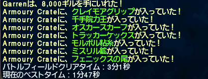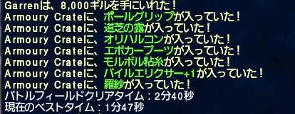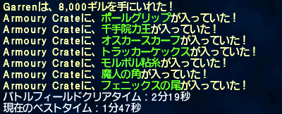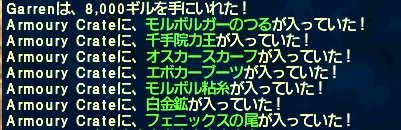 次はいよいよ黒帯アイテムか…。ウィルムの逆鱗は私とえりんぎさんが持ってるけど…。あ、私のモンクはLv12くらいです^^