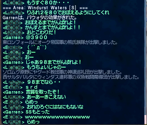 ぽちっこの赤がLv80に、でんどんの踊り子としりさんのモンクがLv75になった。ぽちっこはLv82のリフレシュIIが楽しみのようである。