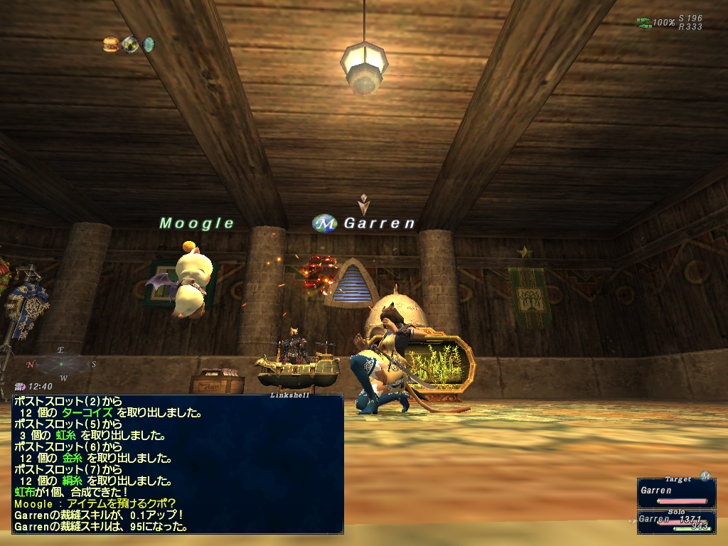 それから、コツコツ買い集めた材料を使って裁縫スキルを上げる。エラントカフスを8個くらい作って0.2アップ。裁縫スキルが95になったぞー^^