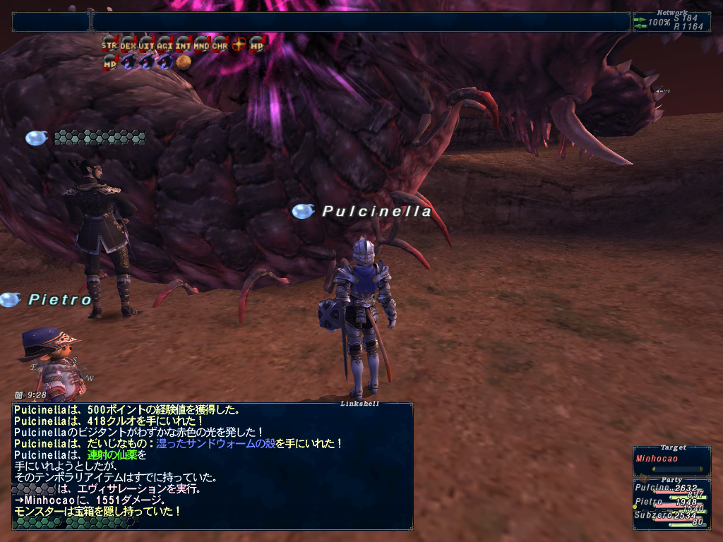 せいたんがアビセア-タロンギでグラヴォイドのだいじ取りをやってたので赤弱点を付きにぷるさんとぴえとろで行く。途中下位のサンドウォームが居たのでぷるさんで釣る。赤を付いてだいじゲットー。ナットNMとかマンティコアNMとかコカトリスNMとかクァールNMをやった。