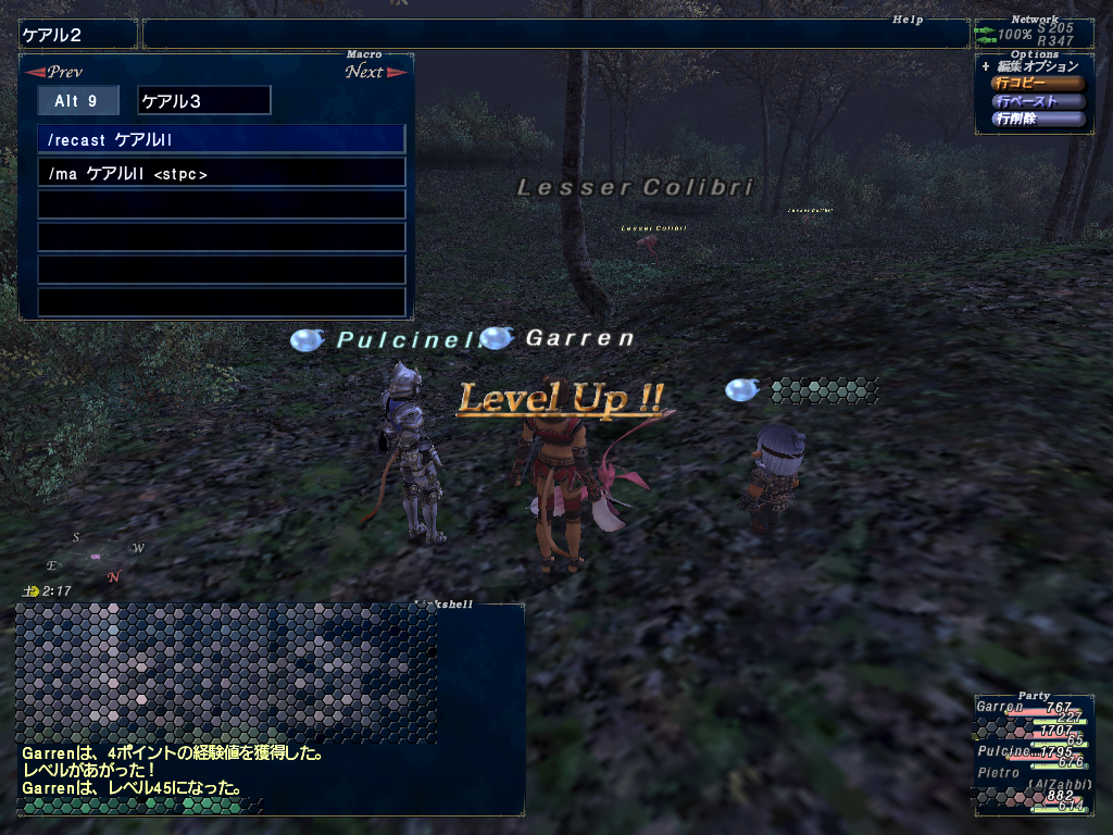 ビシージ後、詩人のレベルが@1で45だったのでワジャーム樹林で弱いコリブリを狩る。