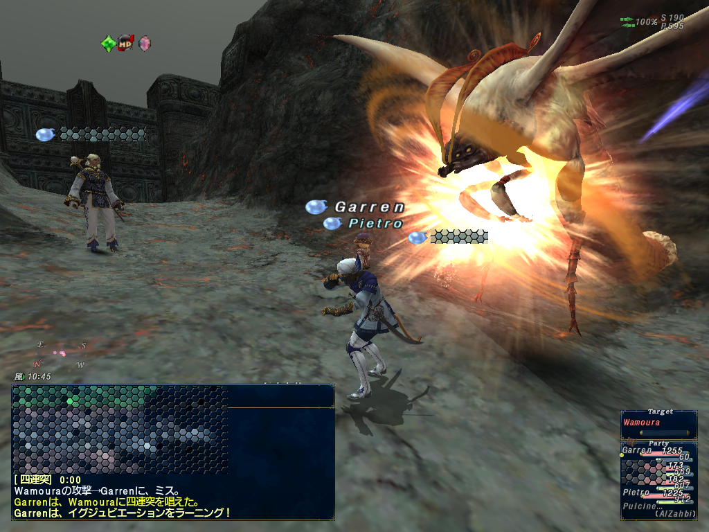 次はムバルポロス旧市街でフライパン&ゴブリンラッシュをラーニング。旧市街の敵は弱すぎるので新市街に移動してオッスして覚えたらしい。帰りにNPCに話しかけたらなんかクエストのNMが出てきた。