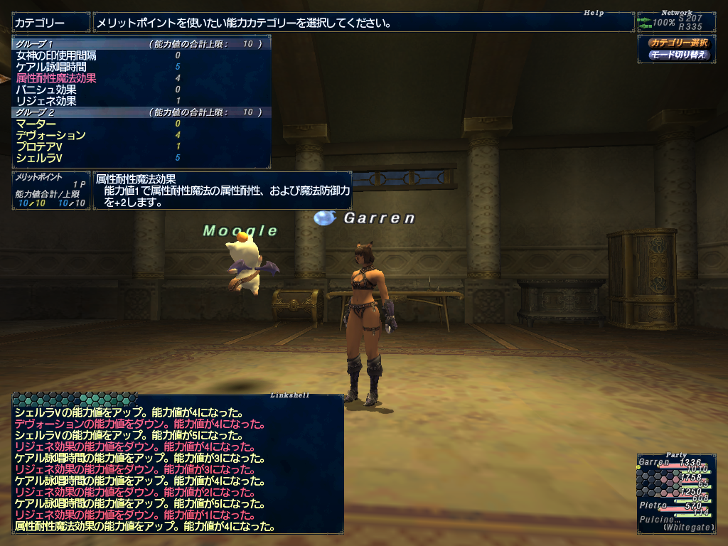 最後寝る前にちゃーんに白のメリポについて聞かれたので、ケアル詠唱時間と属性耐性、シェルVとかがいいんじゃね!ってアドバイスした私のメリポはリジェネ効果に4くらい振ってた。はあああああああああああああ!振り直し!