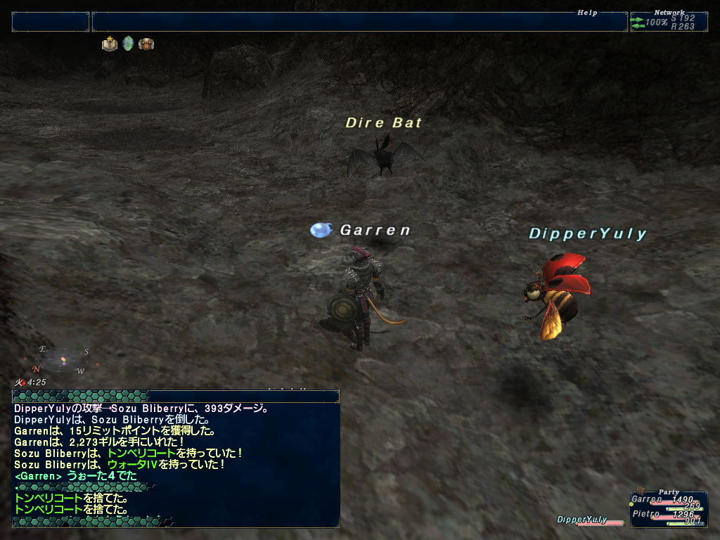 怨念洞のトンベリNMをボコってウォータIVをゲットしようツアー2回目。ぴえとろとぎゃれんだけで行きました。1時間強?GoVをやりながら沸き待ちしてたらようやく沸いた。行けッ!ユリィ!