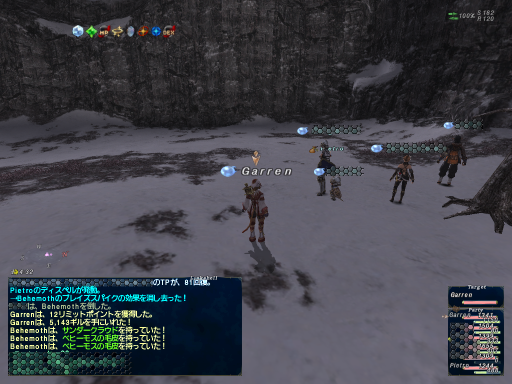 とか思ってたら、ライバルPTはボスを倒すレリックメイジャンらしく、アライアンスを提案されたらしい。こっちはクリアフラグ狙いなだけで競合部分は無いのでアラを組む。で、召喚NMをアラで狩ってトリガーゲットだっけ?