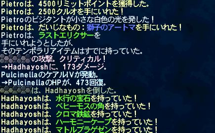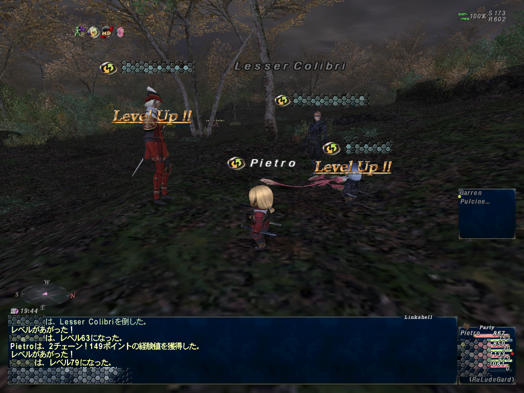 ビシージ後、@300くらいでちゃーんとしりさんが上がるそうなので、Lv61シンクしてコリブリを3匹ほどヒィヒィいいながら狩る。