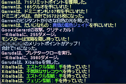 あと、マタンゴさんとでんどんとせいたんが持って無いであろう、アビセア-アットワの真価のナットNMをやったら、タゲが不安定で何か死にかけたけど何とか赤付いて勝利。その後、悠然のジェイドだすミエリッキさんをボコったけど、ライバルPTがきたしビシージももうすぐだったので撤収してビシージを堪能した。