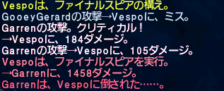 よそ見して何か調べ物をしてたらジェラルドからタゲを取っていたらしく、ファイナルスピアを食らって即死した。