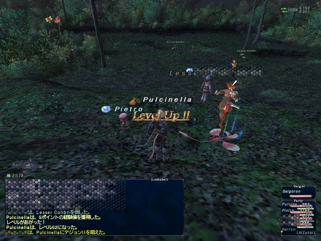 ビシージが来て適当に戦って終わったら戦士Lv52まで@1だった。ワジャームでLコリを1匹倒す。Lv52になったぞー^^