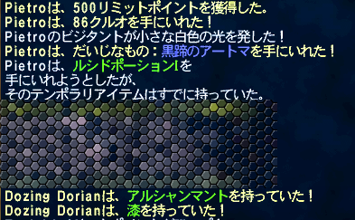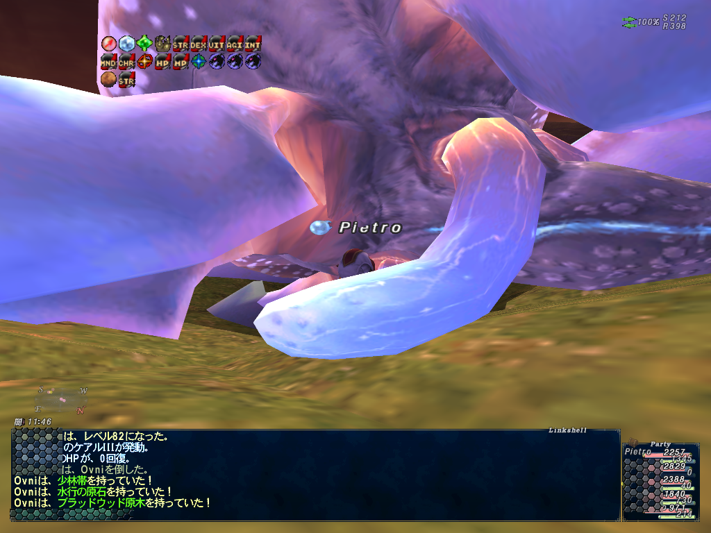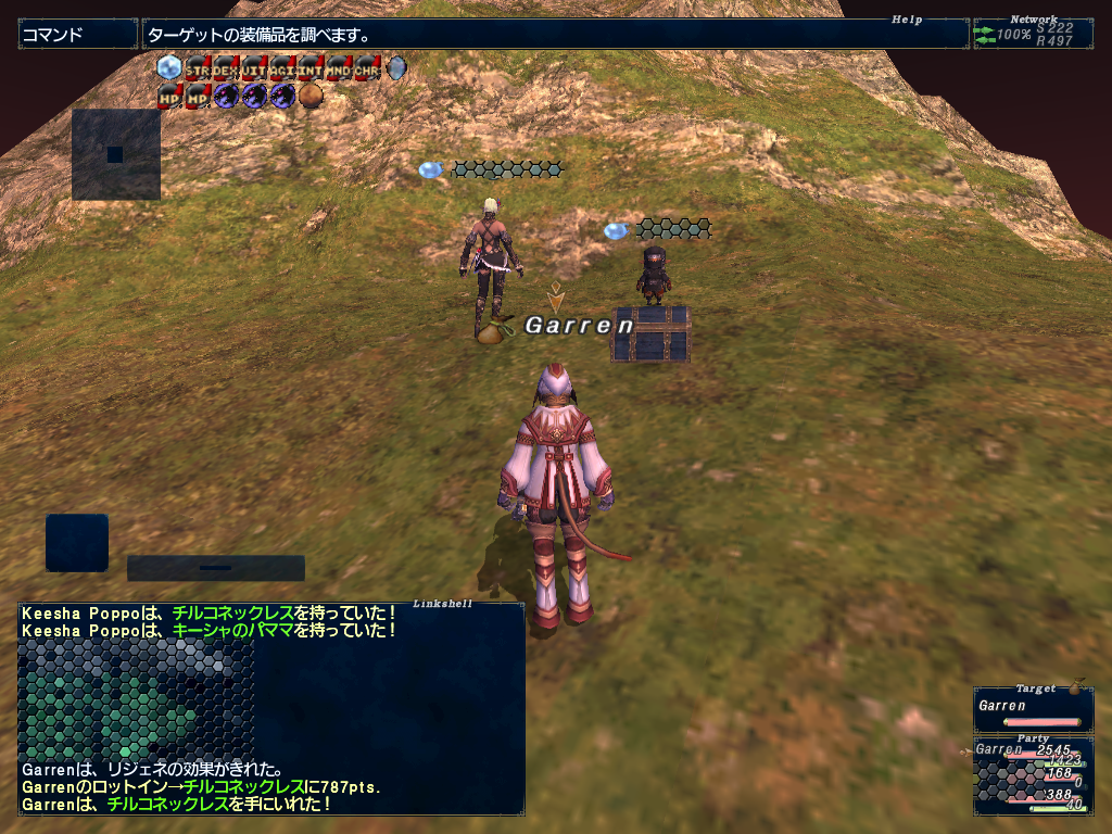 夕食後寝て、起きたら多分アビセア-ラテーヌで4名ほどが活動してた。記憶が曖昧だけど多分そう。なので打時間用に白ぴえとろで寄生しにいった。キーシャ ポッポをやってたみたいで、ねんがんのチルコネックレスが出たらしい。ロットとパスをしてマタンゴさんに流れた瞬間赤玉になってたぞー^^
