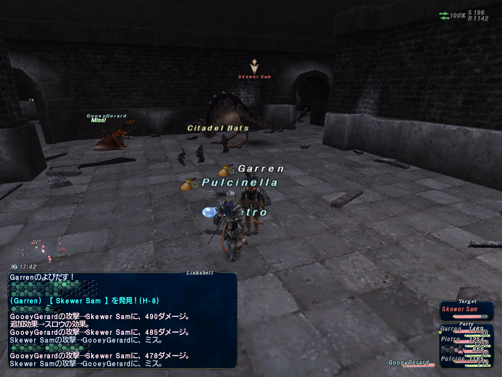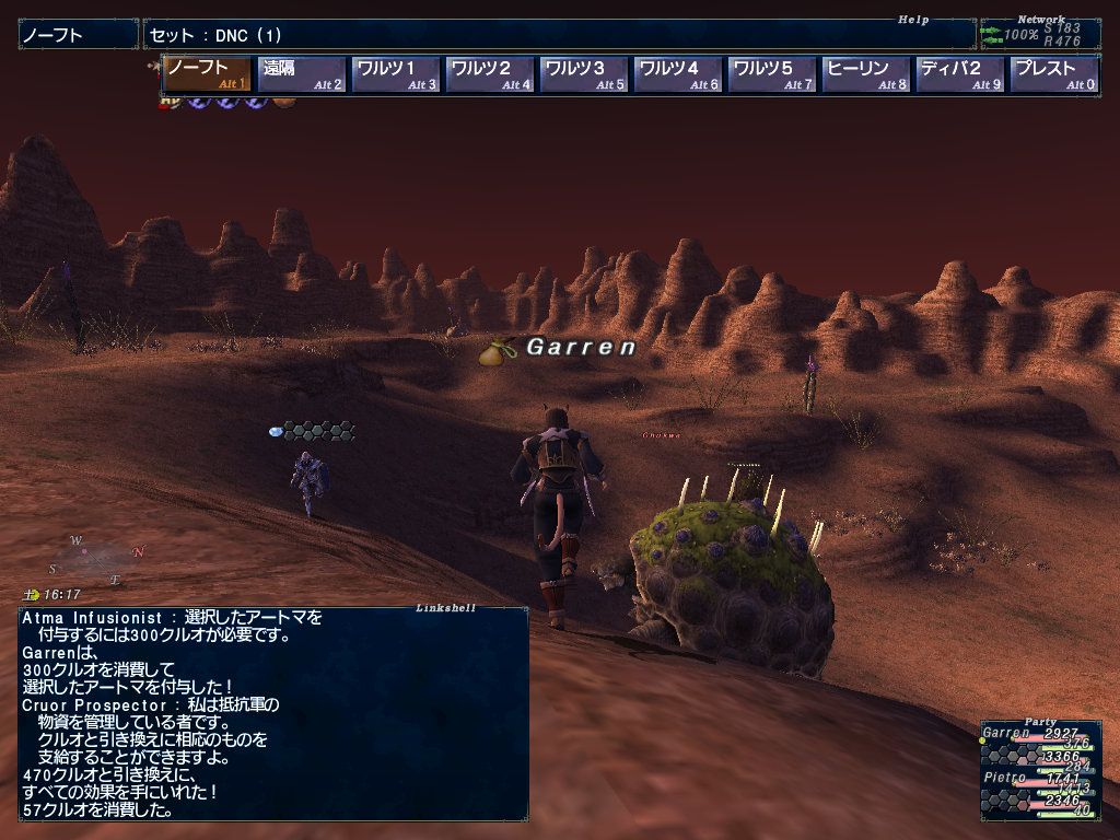 しりさんのシーフAFをとりにガルレージュ要塞に行ってきました。「???」を順番に7つ調べると最後のポイントでNMが沸くのです。で、「???」は1門奥にもある上、エリアチェンジするとフラグが消えるので4人揃えて1門を開けないとダメなんです。