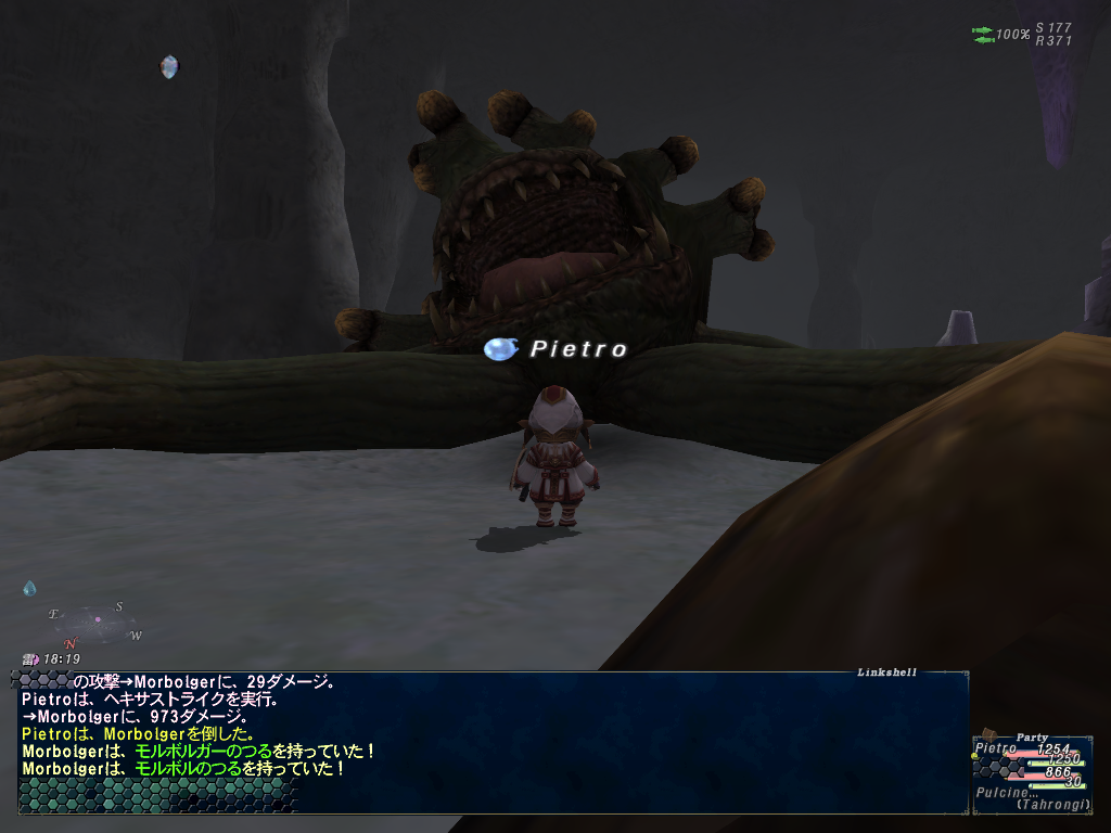 その後のイベントでオルデール鍾乳洞を抜ける途中、デジョンII役で連れて行ったピエトロがモルボルガーを発見して釣った。でゅふ。