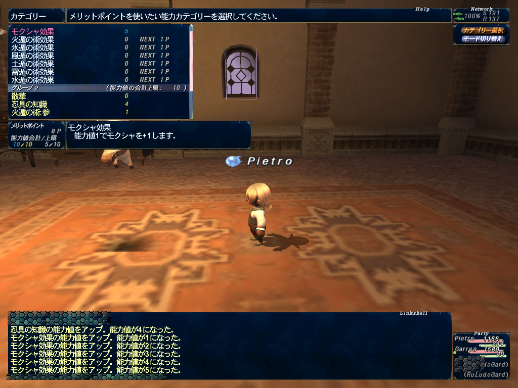 ぴえとろのメリポが28くらいあったので忍者のメリポに振る。