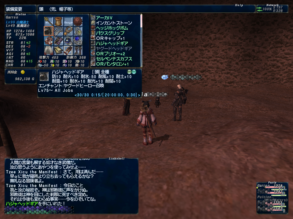 そのまま流れでえりんぎさん希望のヤグードヘッドギアのクエストのNM戦をやってきた。私もついでにやった。ヤグードヒーロー召喚できるハジャヘッドギアをゲットしたぞー^^