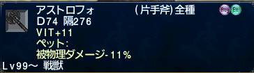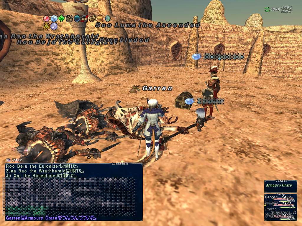南米産の迅速のジェイドを取りにアビセア-コンシュタットに行ってトンベリをどつきまわす。3匹目あたりででたと思う。んで、ドミニオンOPSをやるためアビセア-ウルガランに行って牛をボコる。南米産はクルオ交換で9000クルオ払って3つめの迅速ジェイドをゲット。牛をボコリまくって南米産のレベルが76>78だか79になってた。