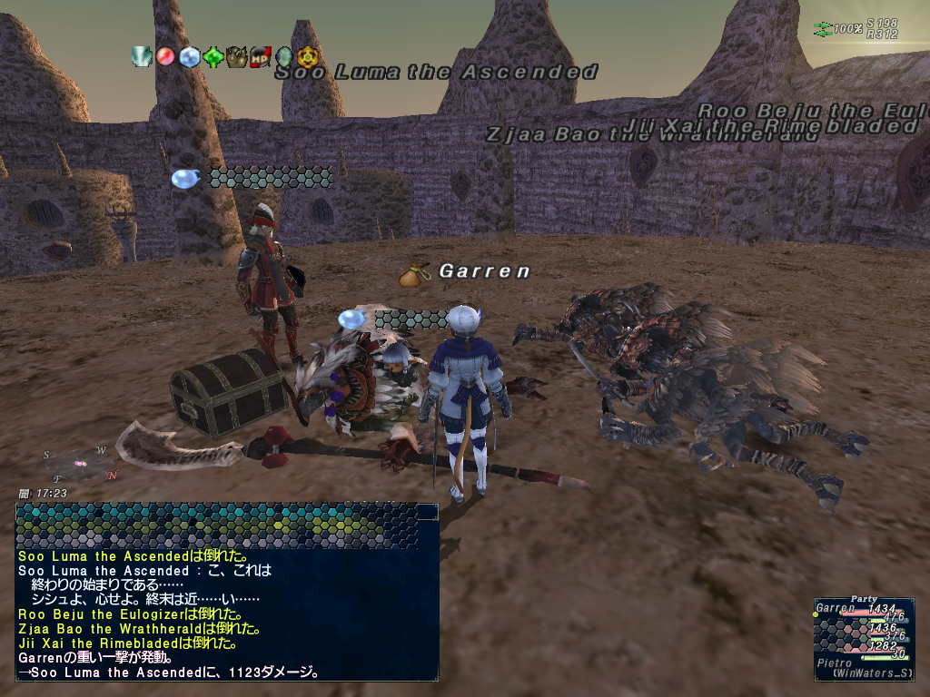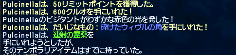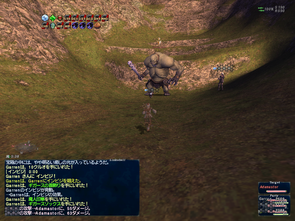 南米産用のランサー型紙:脚を取ろうとコリブリNM見に行ったらやってる人が居たので、遊軍のジェイドを取るべくトンボNMをどつく。まあ、余裕だった。次はボスNMのクリアフラグを取るべくキレイン-キロインをボコる。魅了技が来なかったので余裕だった。デスナッシュで死にかけたりしてたけど。