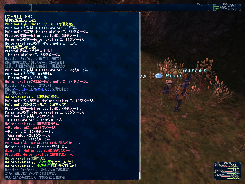 1人3キャラで火ボム族のメイジャンをやるべく、アビセア-ブンカール#8付近のジンをボコる。すると自爆技で全滅した。