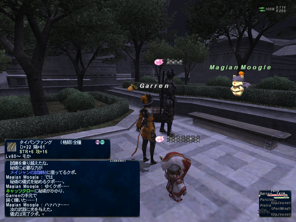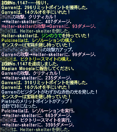 ここ数日、火曜日になるたびに私の火格闘武器のメイジャンを手伝ってもらってます。でゅふふ。火ワモーラの項目をアビセア-アットワでやりました。