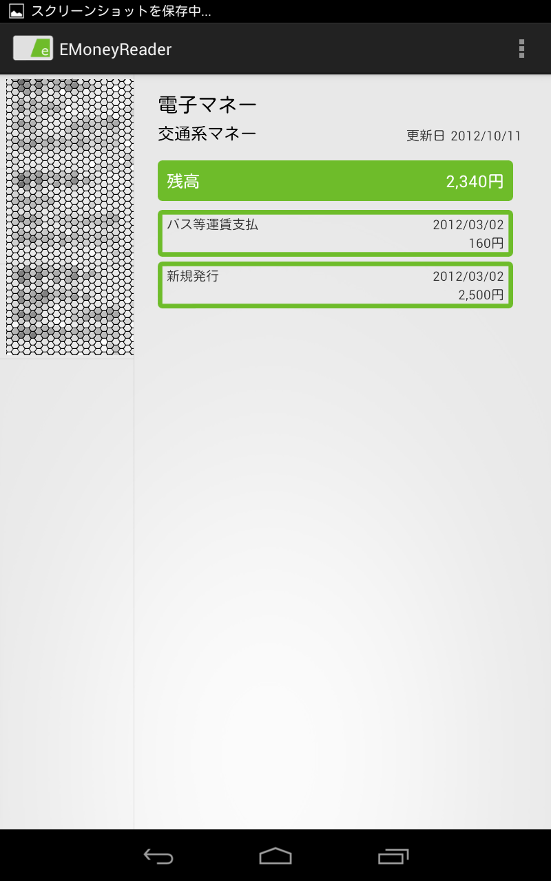 某雑誌でNexus 7のNFC機能の活用としてEMoneyReaderというアプリを使うと電子マネーの残高等が表示できるとあったので早速試してみる。ダウンロードして、N-04Cの電子マネーのロックを解除してかざす!無反応!はい、終わり!