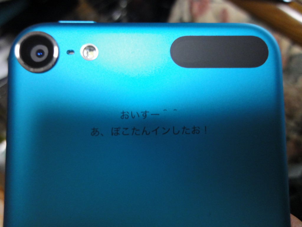 そんなわけで、先日発売された第五世代モデル、多分9月末頃にApple Online Storeで予約したと思うけどレーザー刻印を入れてもらいましたよ!以前購入した第二世代モデルにも同じ刻印を入れてもらってました。でゅふふ。
