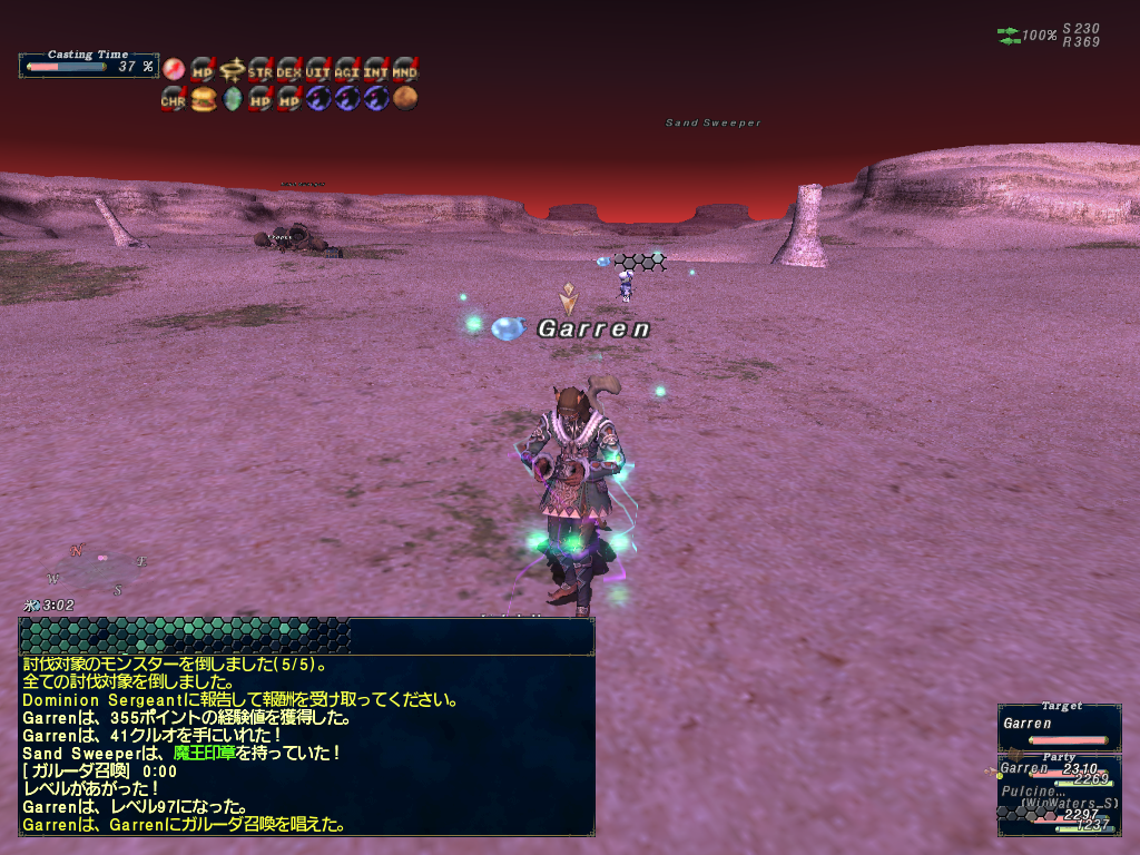んで、しりさんがスキル上げも兼ねてドミニオンをやるとか言ってたので召喚士で参加する。ガルーダさんのプレデタークローは油断したアートマを付けると5000ダメージを超えたりしてスキル上げにならないので弱いアートマってか長く維持できるように、天導の人工アートマ、邪鬼のアートマ、無常のアートマを付ける。