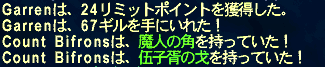 とかやってたら、その間しりさんは闇の精霊を落とすNMを張ってて、眠くなったので最後に沸かなかったら帰るといっていたターンでCount Bifronsが沸いたぞー!アブゾデックください!