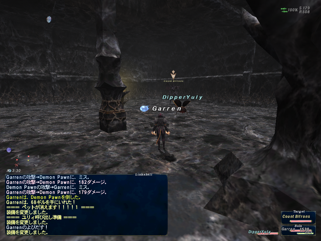 風呂に入ってログインしたら、そういえばログアウトしたのがズヴァール城外郭だったので、ズヴァール城外郭にログインした。で、デューク・ハボリムさんは沸いてなかったのでカウント・ビフロンスの沸く内郭に移動して、闇の精霊のNMの抽選対象とビフロンスの抽選対象を狩ってたら、3周目くらいでビフロンスがわいたぞー^^