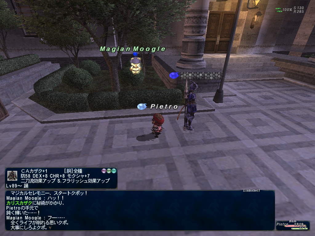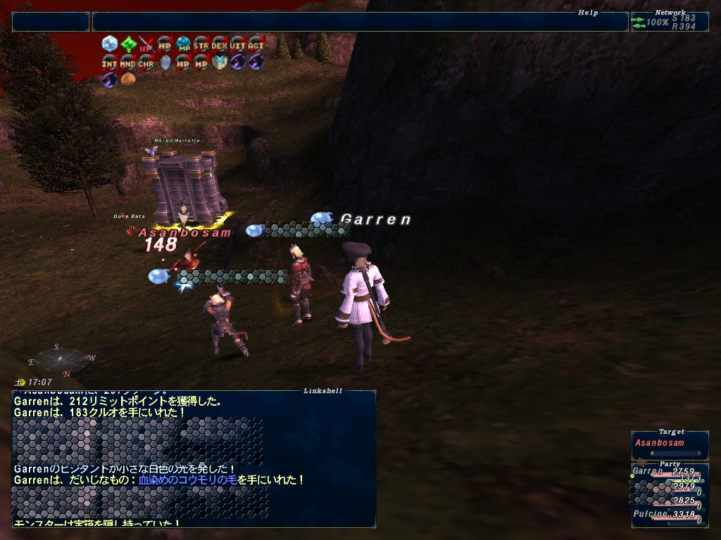 この日だったか?に、デュナミス-ブブリムクリアして、貨幣とか時間いっぱい稼いでから、ちゃーんとしりさんとぴえとろ、ぎゃれんの3人4キャラでデュナミス-タブナジアに行ってみたら、ちゃーん希望のデュエルシャポーと甲賀手甲がポロッと出た。おめでととすー^^