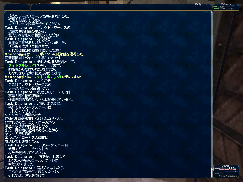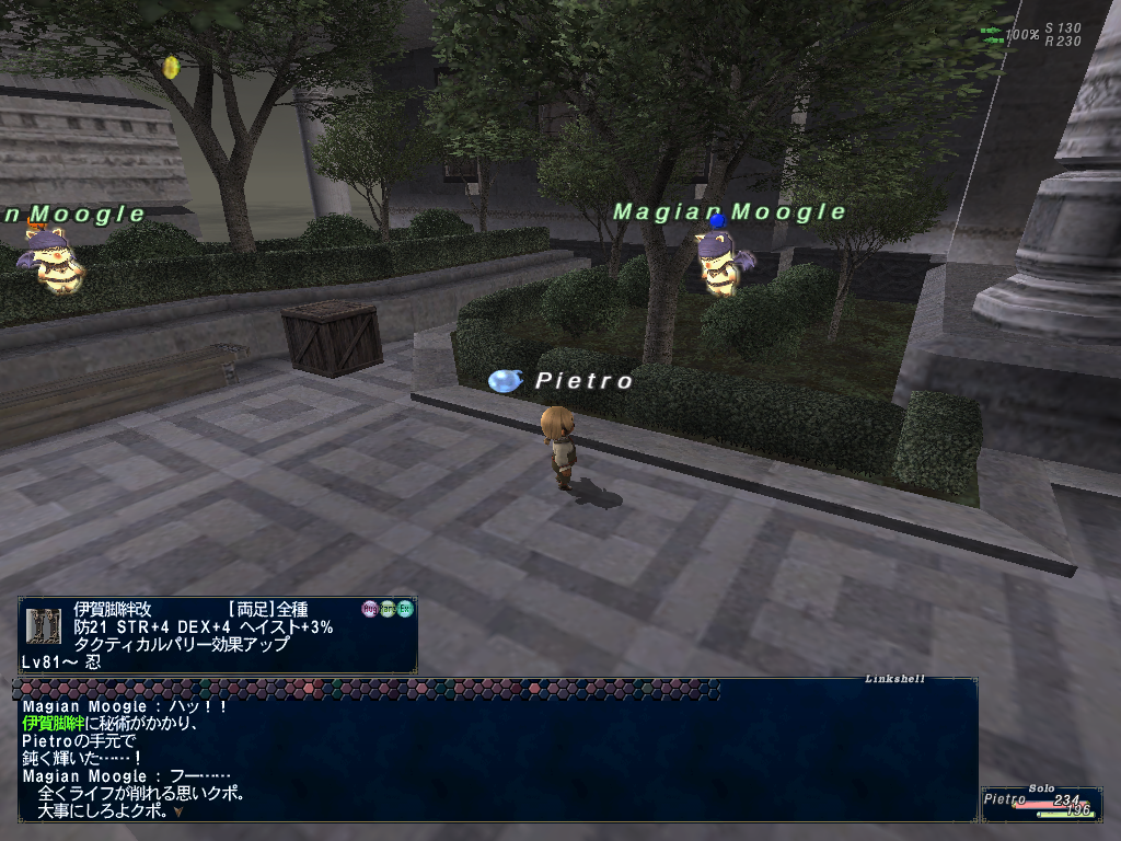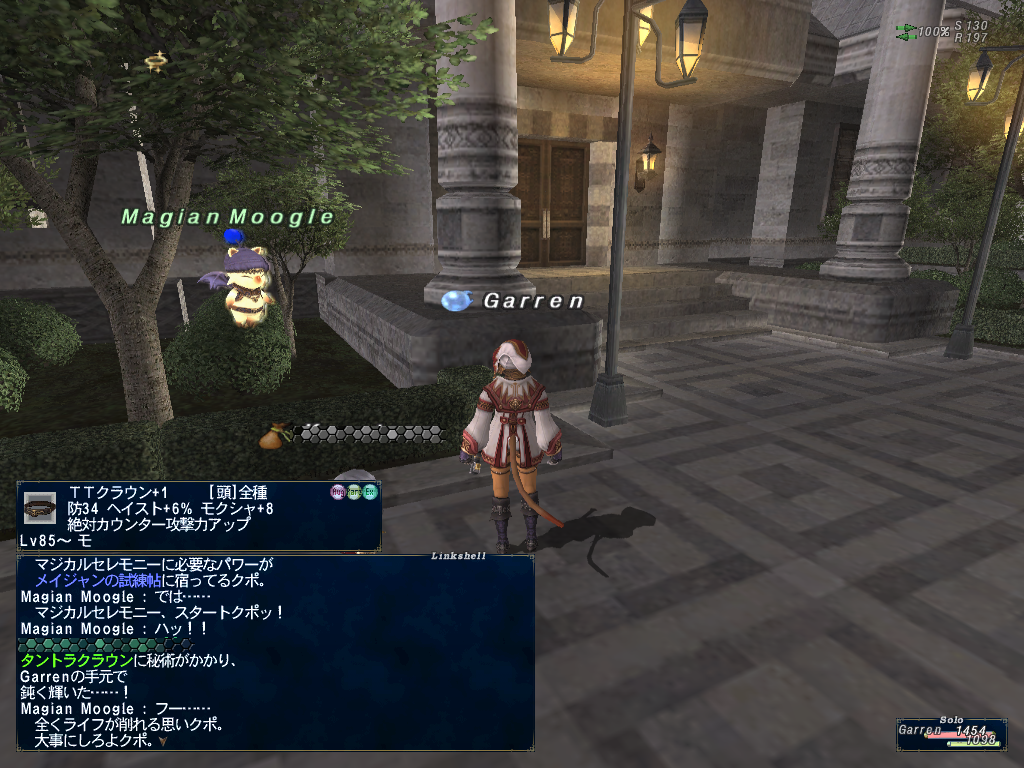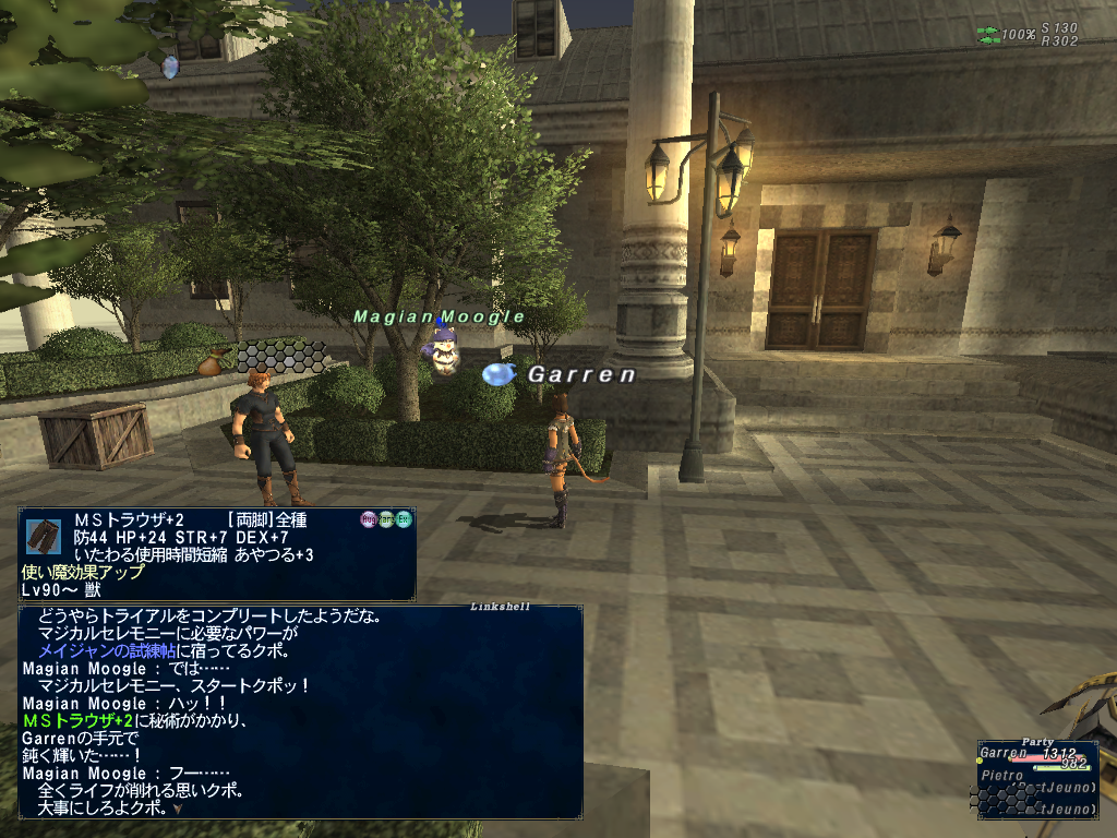 4月13日、デュナミス-サンドリアに経験値メイジャン+AF2取りに行きました。延長取りでちゃーんが来てくれなかったら死んでた場面もあったり。まあ無事全部の延長を取って経験値稼ぎをオッスオッス。MSトラウザ+2の経験値メイジャンが終わりました。