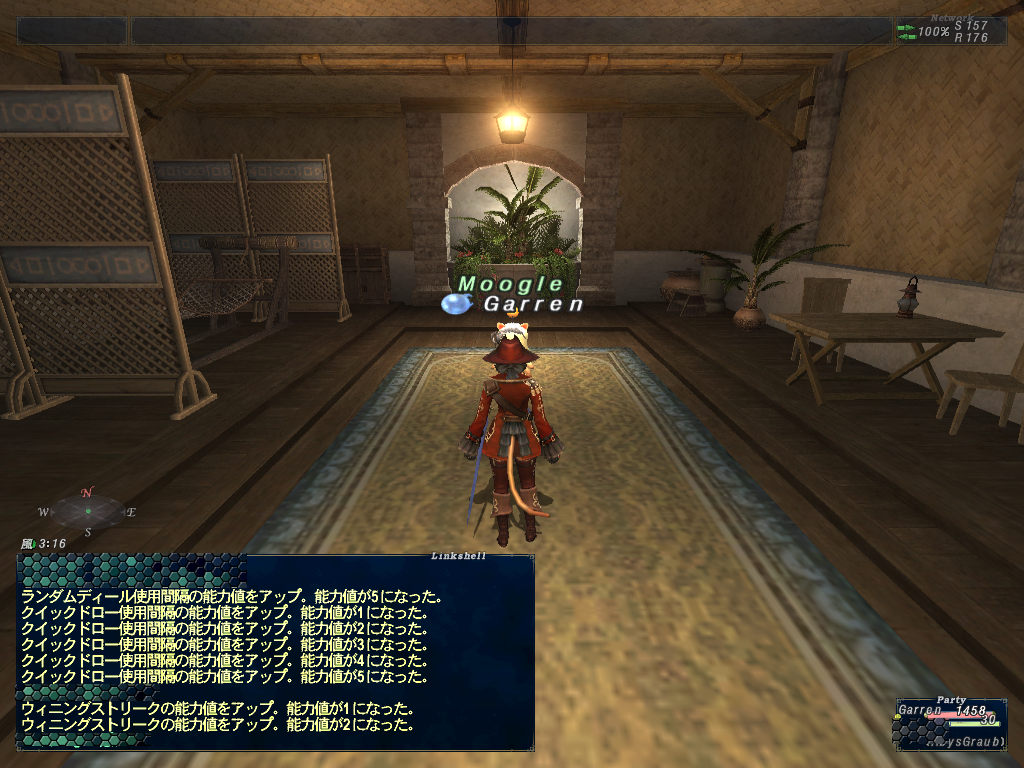 なんか4月30日のバージョンアップ当日、とても眠かったので5月1日の0時30分頃ログインしたらしりさん、えりんぎさん、ちゃーん、おぱきすた達がアチュカの募集があったとかで行ってきたらしい。しりさんがD+75くらいの格闘武器装備してたぞー!ぼくもほしい!