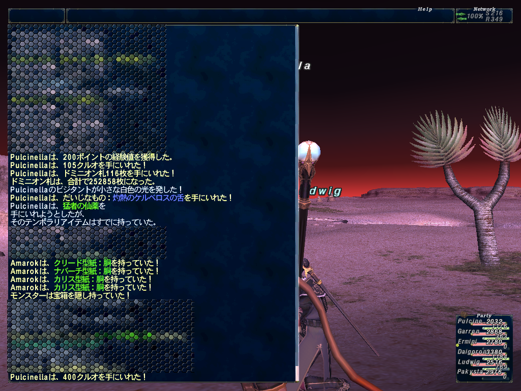 5月3日の戦闘までワクテカしながら待ってるのもあれなので、ちゃーんのコルセア胴型紙を取りにアビセア-アルテパのAmarok戦をやることにした。ついでにぷるちねっらさんのゴエティア胴型紙ももらうのですデュフフ。だいじがないPTメンバーが2人いたので(ぷるさん含む)、そのメンツからトリガー3種を消費して戦闘。