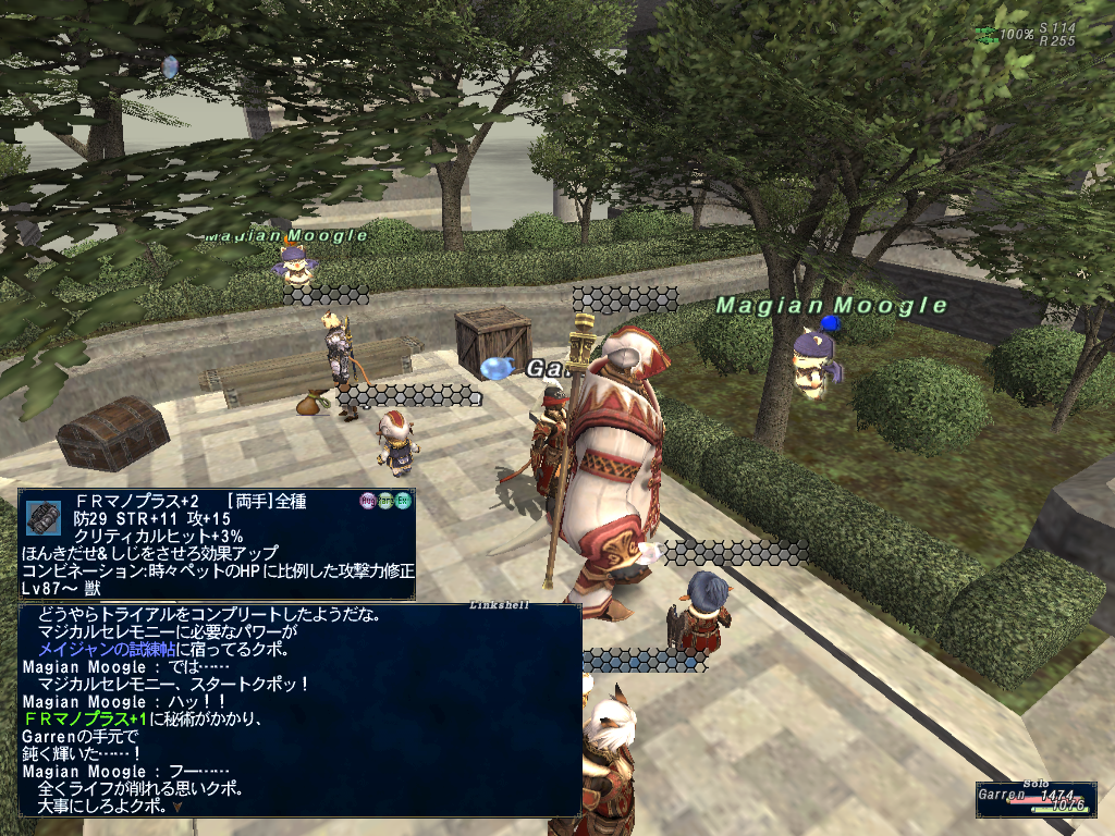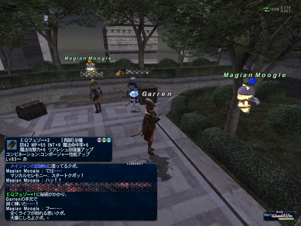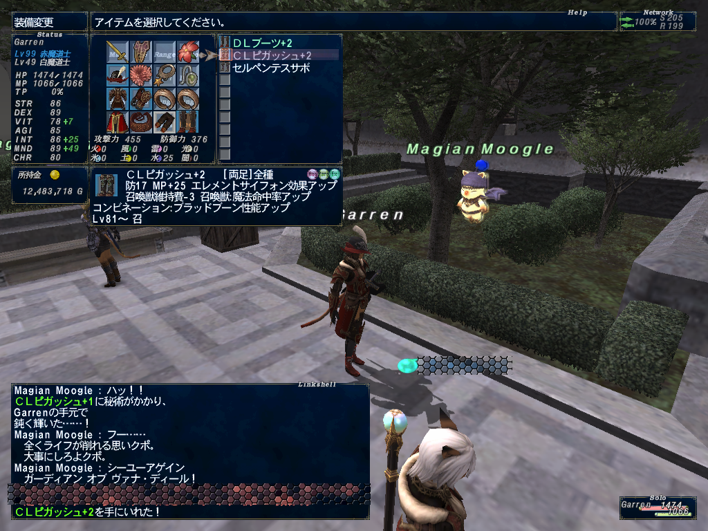 で、でんどんのAF3+1強化をするために、アビセア-ブンカールで大事とりをしていたしりさんが居たので、白/踊のGarrenと戦/踊のPulcinellaの2キャラでNMインプをボコって大事を取ろうとオッスオッス。