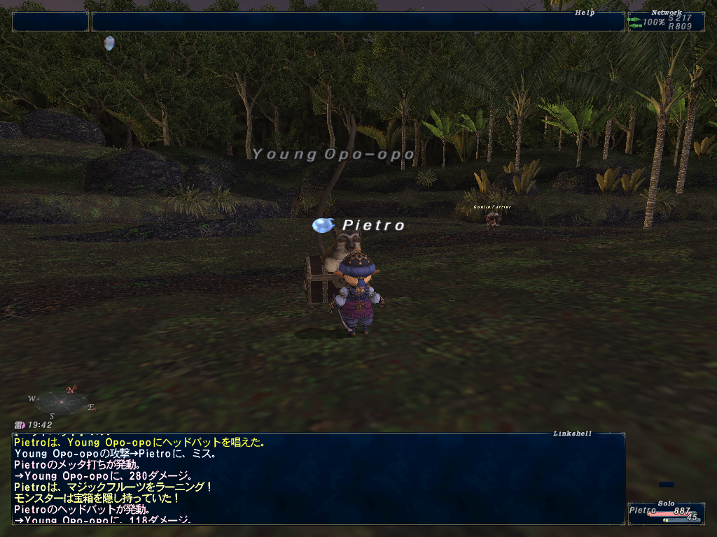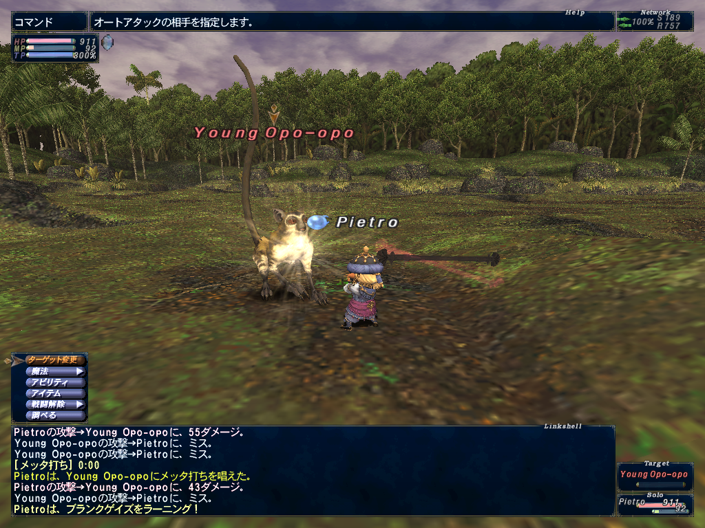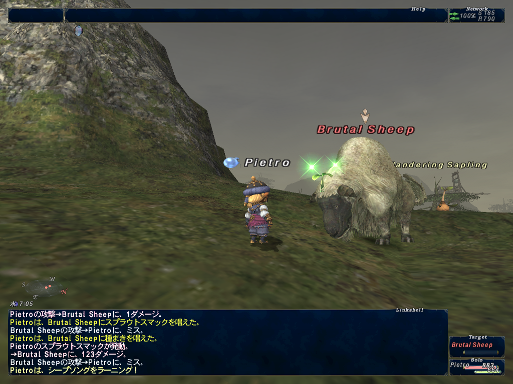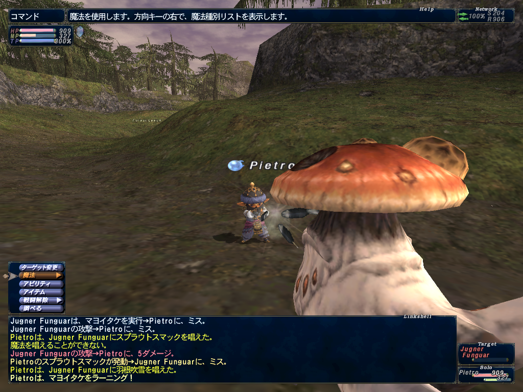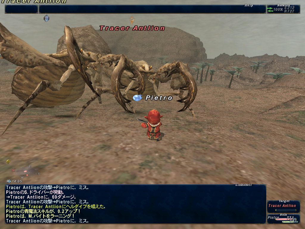 そんでビシージ後に@1でレベル上がりそうなキャラのためにワジャーム樹林でコリブリ狩ってたらフェザーティックルをラーニングできて小躍りするぴえとろ氏。