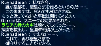 あ、そういえば先日、ビシージで捕虜になってた人を解放しに行ったら、天蛇将ルガジーンが檻の中に居たよー。