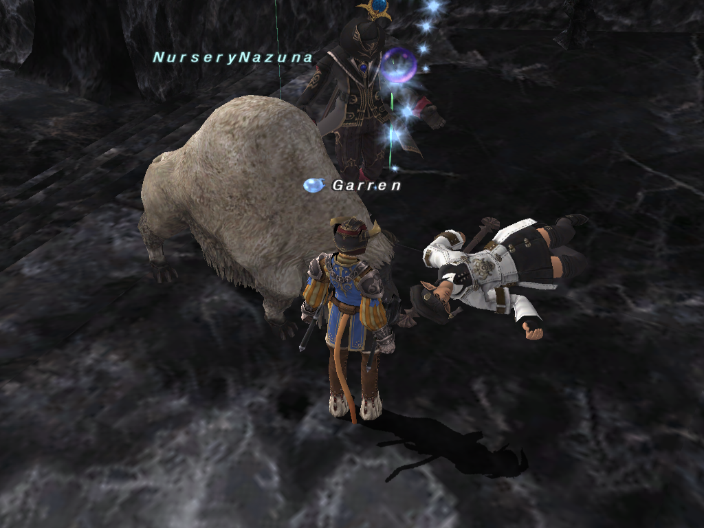 まあせいたんが3回目に沸いた黒モグ5匹中3匹が唱えたガIII系の範囲に居て死んだけど、なんとか勝利できたよー。僕は離れてたので事なきを得ました。でゅふふ。