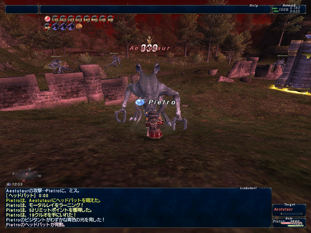 で、Rani。アイテムレベル装備でも魔法も攻撃も痛えよ馬鹿ッ。多分メテオは来なかったと思うけど。あ、沸かせた時間が突時間だったので短剣ジョブ、シーフのしりさんが短剣弱点だったらお願いネー、的なノリでやったら青弱点は射撃だったのでスルー。赤弱点は土だったのでRaniのHP半分まで削ってぷるさーんが両手棍戦士でアースクラッシャーして弱点終わり。