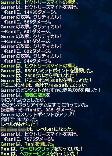 いやー、だいぶ前にRajaの方はやってたらしく、あとRaniのあと赤弱点ついてんのにアートマが出なかったとかで、Rajaの方をやってないのか?とか混乱したけど、Raniのアートマはアビセアキャンペーンだかでもらったらしいので出なかっただけのようでした。