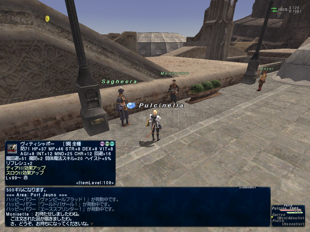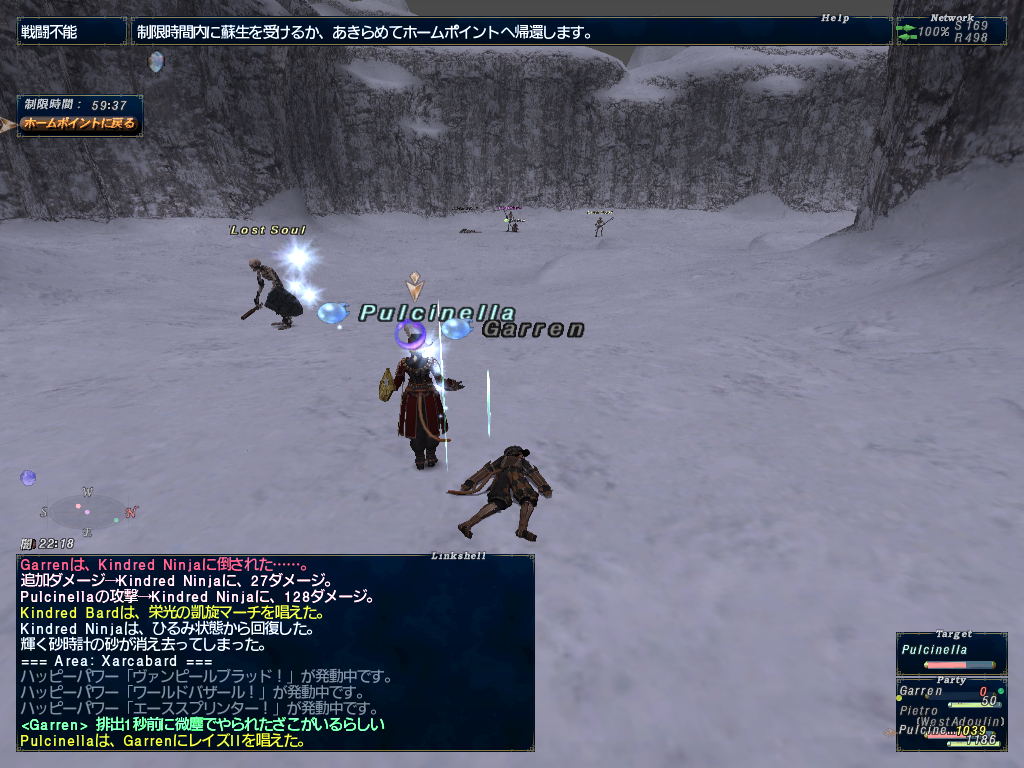 前衛が蝉を張ってガルカを殴る。以上。小竜を1匹呼ぶけどたおしても何度も再呼び出しするらしいのでぴえとろが頑張って寝かせます。あとはまあ前衛にマーチなりマドリガルなりメヌエットなりかけてたようです。かなり余裕を持って倒せたと思います。ぴえとろくんはジョブ専用武具のフラグゲットだよ-^^