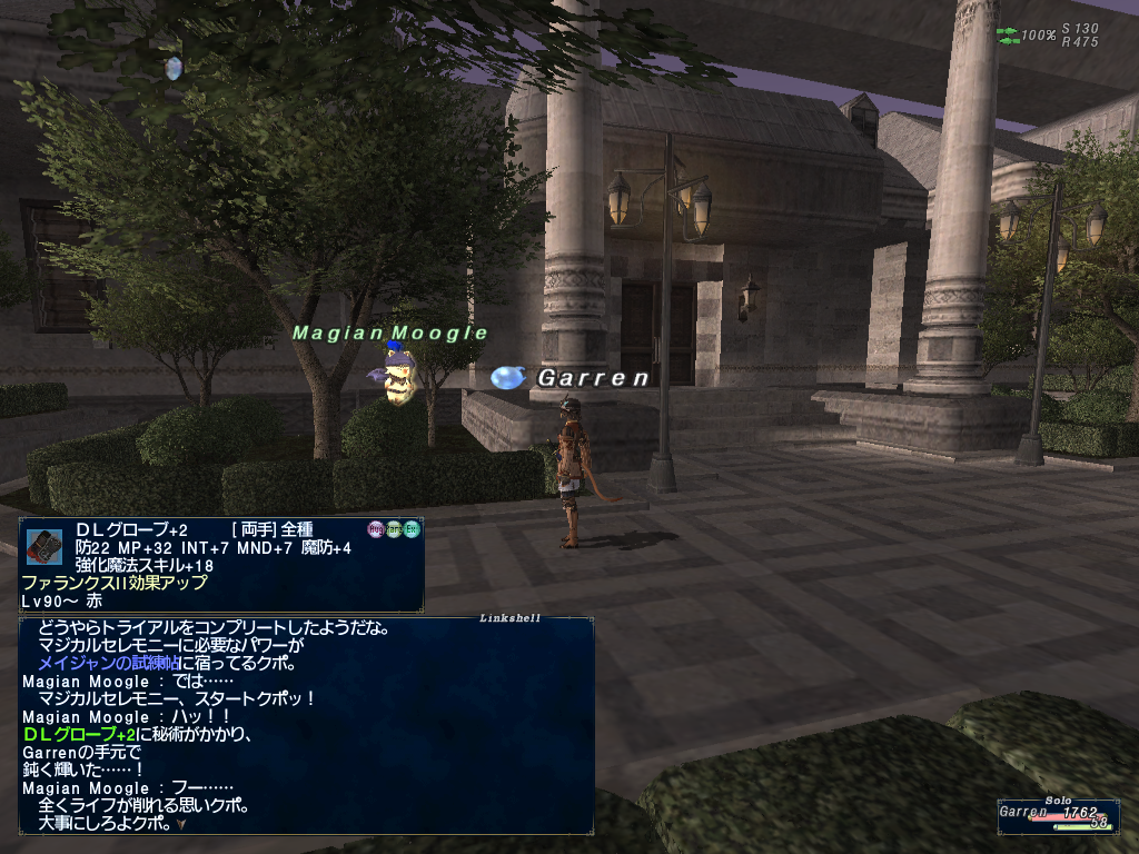 2週間くらい前にデュナミスーバストゥークでちょっとだけやったDLグローブ+2のメイジャンをデュナミスーブブリム?だかで終わらせてきました。